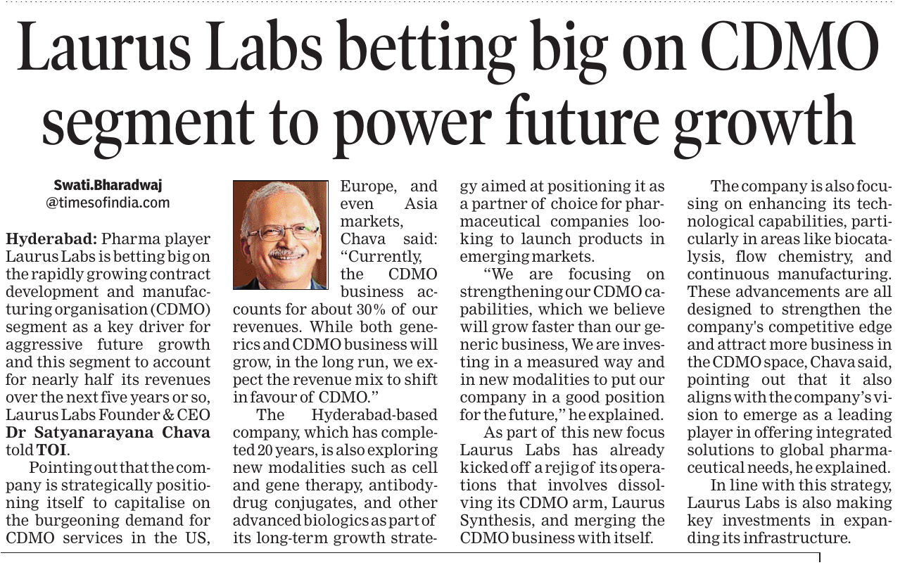 Our work is regularly covered by the leading media organisations around the world. This section serves as a repository of all official press releases issued by our Corporate Communications and Investor Relations teams. You can also browse through the selection of media articles on Laurus Labs and relevant reportage.